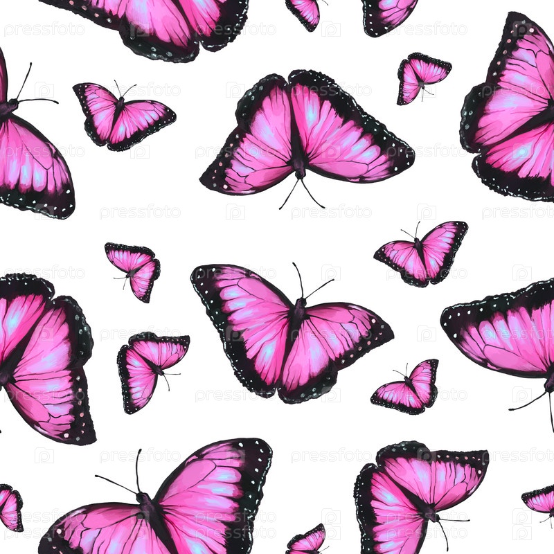 Бесшовный узор с розовыми бабочками