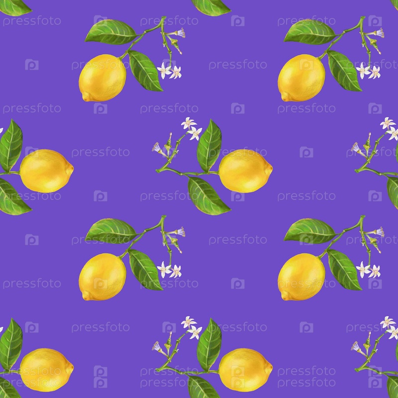 Бесшовный узор с лимонами и цветами лимона