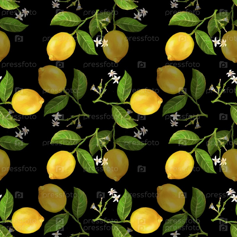 Бесшовный узор с лимонами и цветами лимона