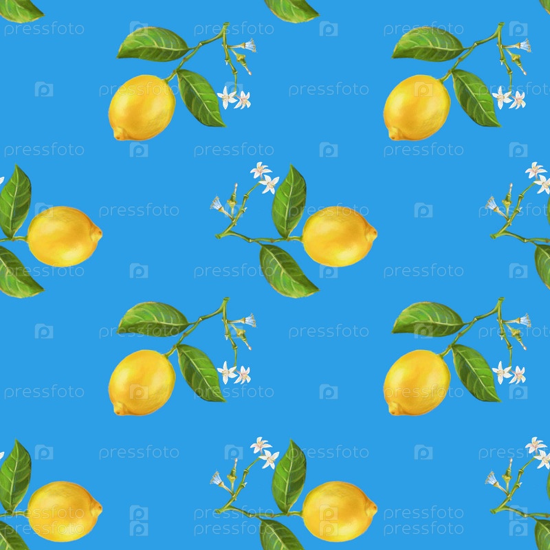 Бесшовный узор с лимонами и цветами лимона