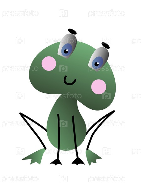 Милая зеленая лягушка в мультяшном стиле, нарисованная вручную иллюстрация, изолированная на белом фоне