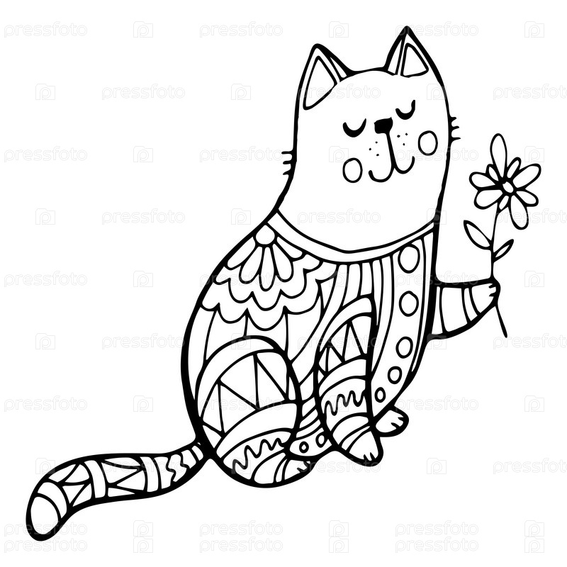 Котенок раскрашивает цветы