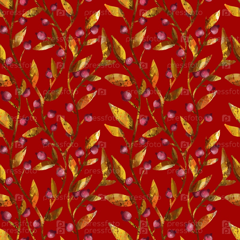 Бесшовный узор с золотыми ветвями и листьями, красивый абстрактный красочный рисунок ручной работы, узор в стиле модерн, рисунок вручную