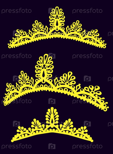 Набор корон, золотая простая корона, нарисованная вручную, изолированная