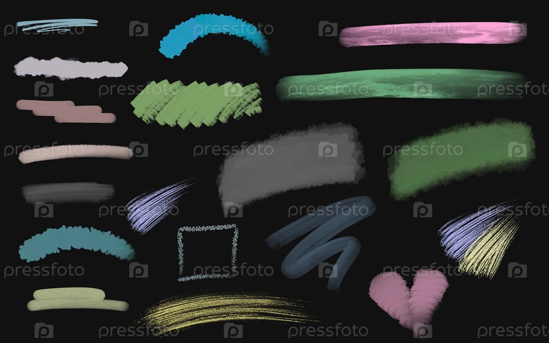 Цветные акварельные пятна для дизайна, нарисованные вручную, мазки и размазывание краски, место для надписи, большой набор