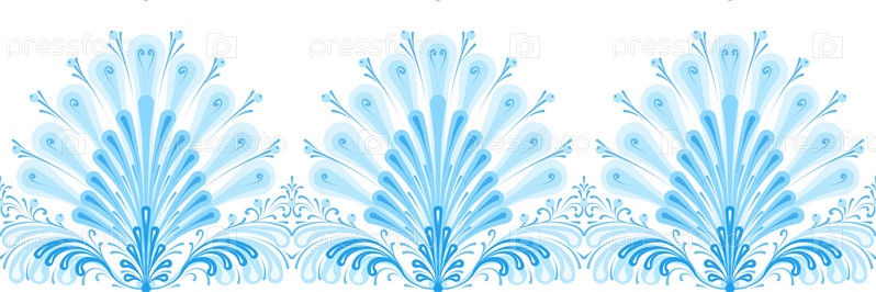 Бесшовный синий узор с элементами империи, фон со стилем русской гжели, народная синяя живопись с орнаментом в стиле ампир, пограничный узор