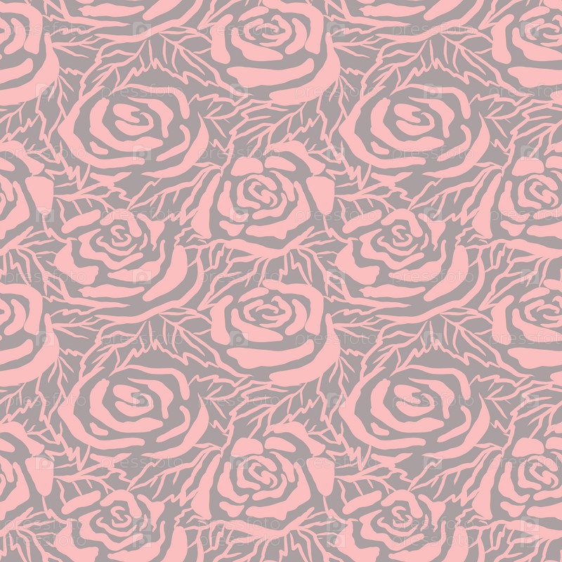 Бесшовный узор с розовыми бутонами роз на сером фоне, абстрактные стилизованные цветы, нарисованные вручную