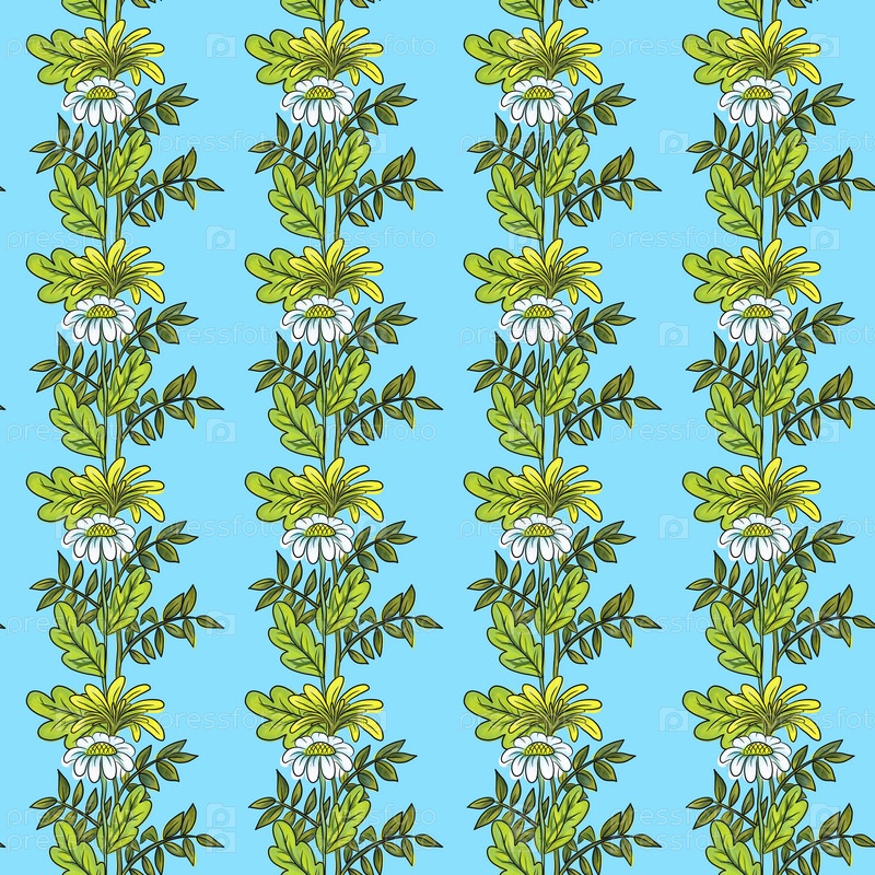 Ромашки, цветочный бесшовный узор от руки, полосатый узор