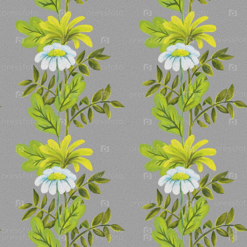 Ромашки, цветочный бесшовный узор от руки, полосатый узор
