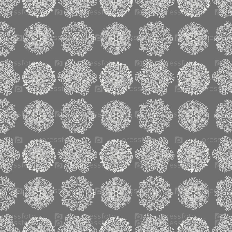 Бесшовный узор с кружевом, вязаными салфетками, народным фоном, обоями, скрапбукингом, тканью