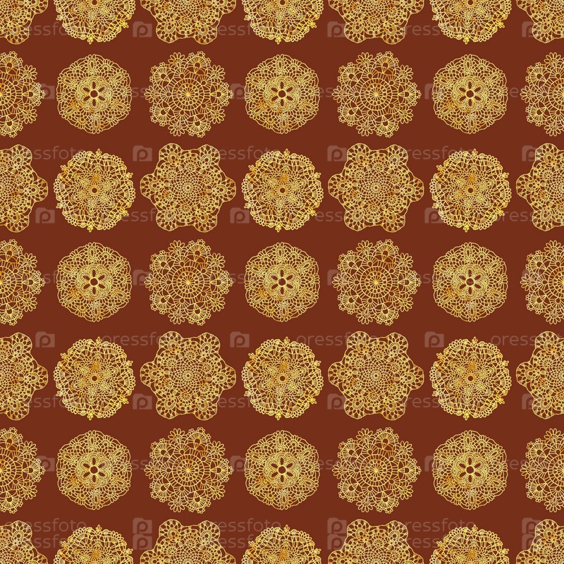 Бесшовный узор с кружевом, вязаными салфетками, народным фоном, обоями, скрапбукингом, тканью