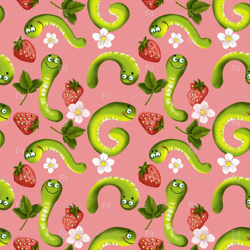 Бесшовный узор из гусениц и клубники