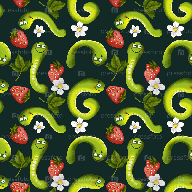 Бесшовный узор из гусениц и клубники