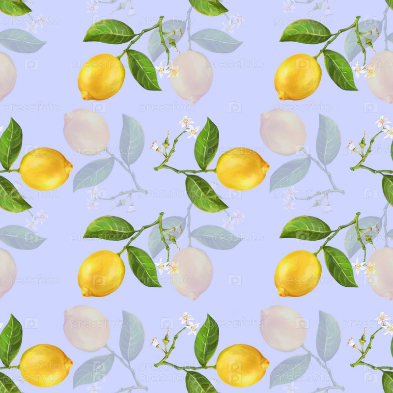 Бесшовный узор с лимонами и цветами лимона