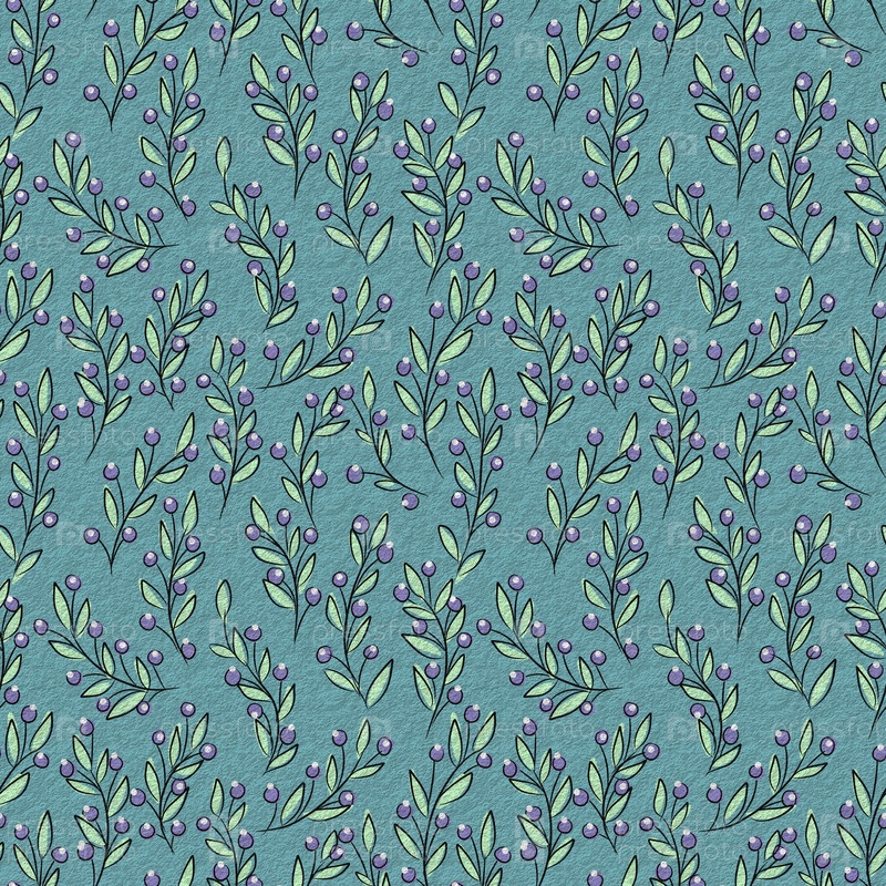 Бесшовный узор с черникой на ветвях с листьями, рисованной, ягодный фон для дизайна