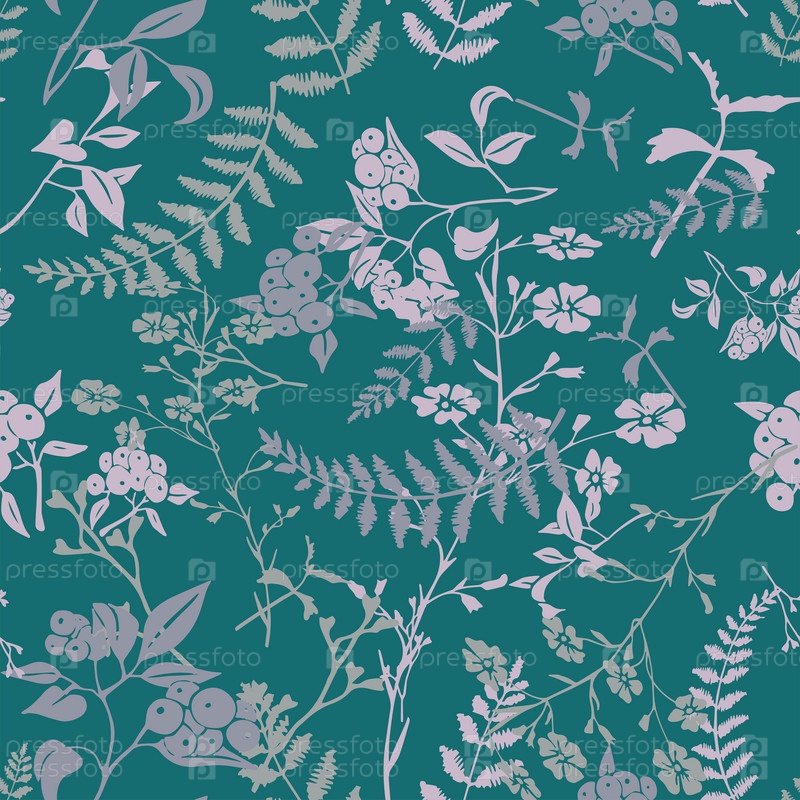 Бесшовный паттерн с полевыми цветами на бирюзовом фоне