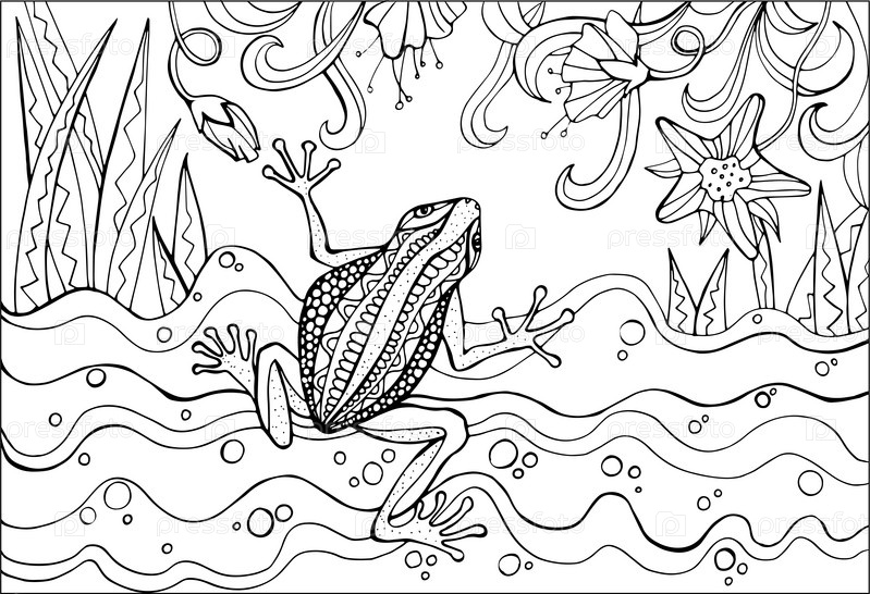Раскраска с лягушкой, иллюстрация для раскрашивания