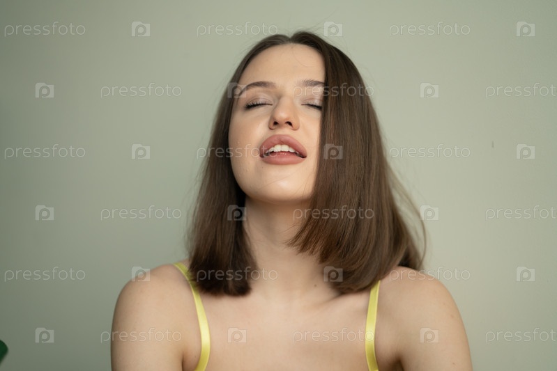 Портрет молодой красивой женщины с бобом в студии