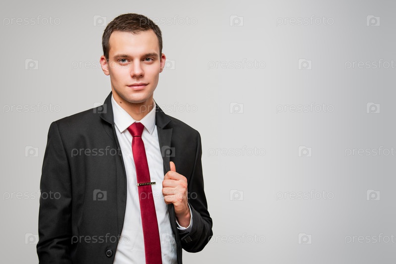Молодой человек в костюме и галстуке позирует для фотографии