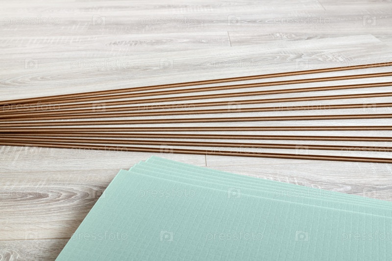 Фон уложенного ламината и листовой тепло- и шумоизоляции