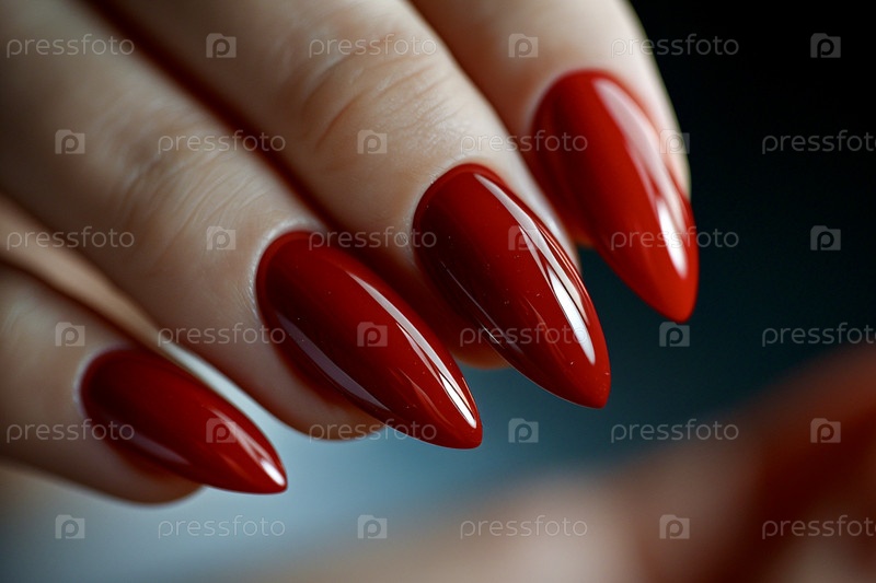Крупный план женских пальцев с ярко-красным маникюром в спа-салоне