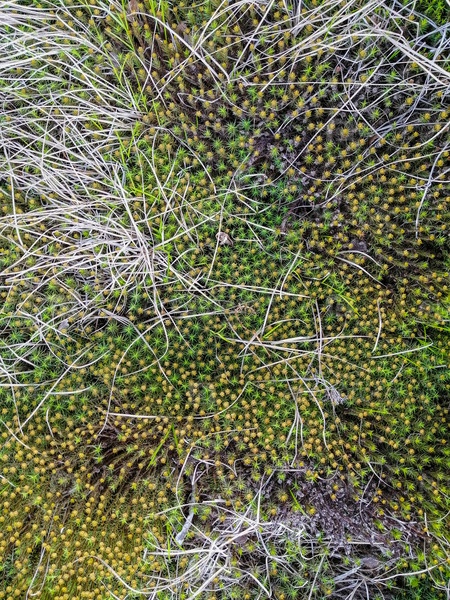 Почва, мхи, растения и сухие ветки на поверхности характерного ландшафта северной тундры. Фоновое изображение, текстура ландшафта. Первозданная природа Арктики
