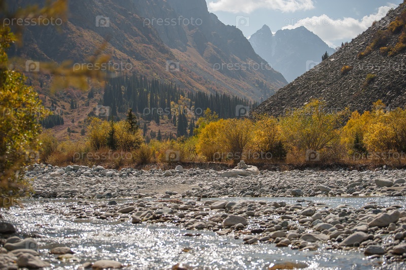 Осенний горный пейзаж в ущелье Ала-Арча, Кыргызстан
