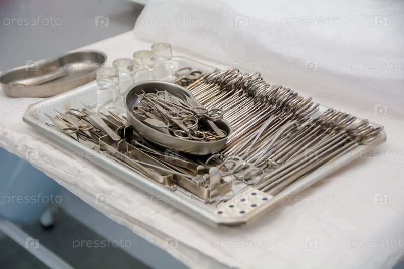 Медицинский стол с приспособлениями для проведения операции