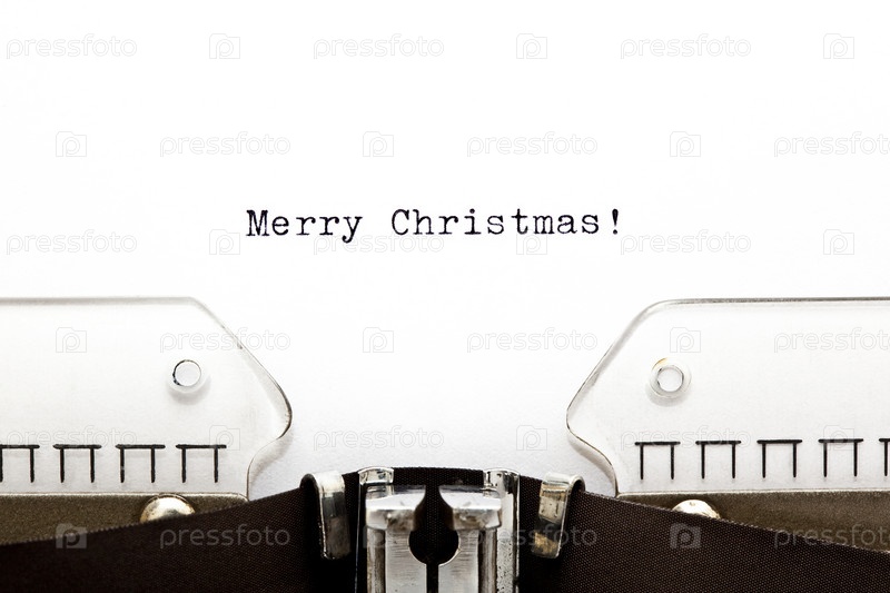Счастливого Рождества! Надпись на листе в печатной машинке