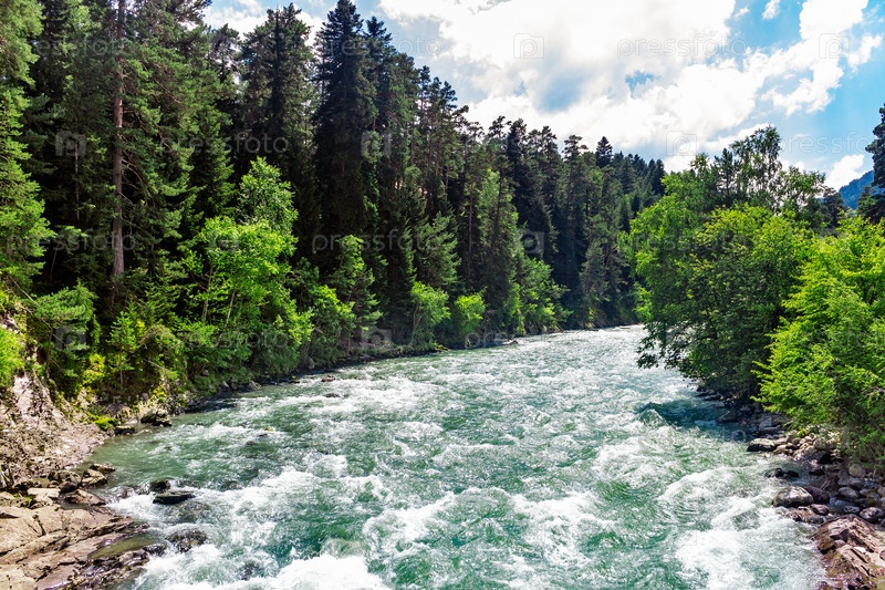 Река Большой Зеленчук в горах Кавказа в солнечный день