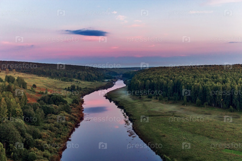 Река и лес с высокого холма на закате. Немда(Немде, Лемде) — река в Республике Марий Эл и Кировской области, правый приток Пижмы (бассейн Камы)