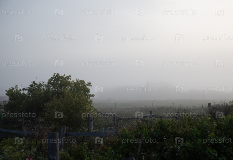 Летнее туманное утро в сибирской деревне в Омске
