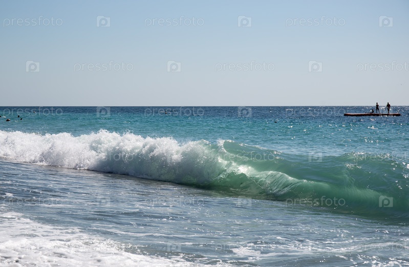 Высокий прибой Черного моря на пляже в Адлере летом