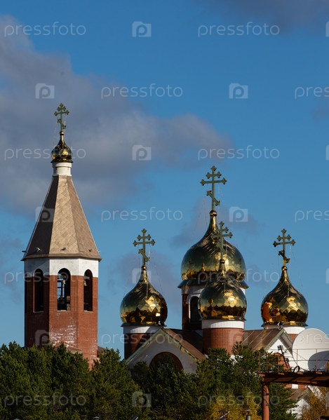 Вид на красивую церковь в центре города Ноябрьска на Ямале летом