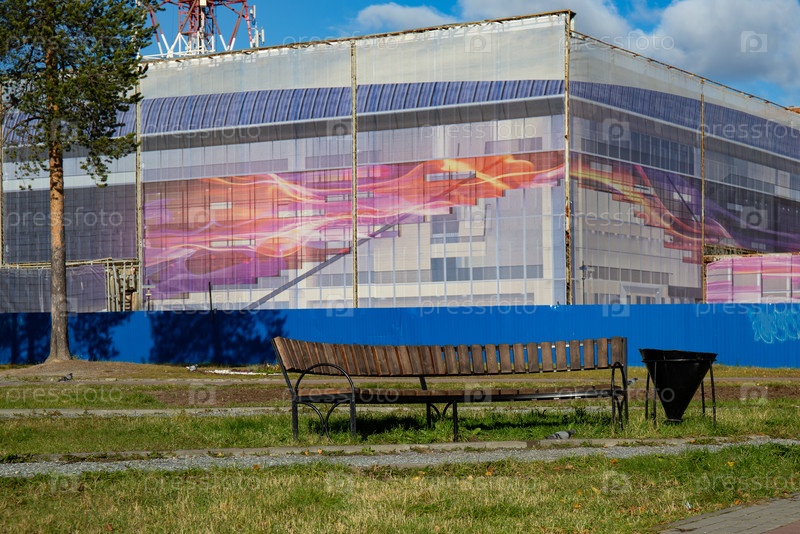 Красивая скамейка в центре города Ноябрьска на Ямале летом