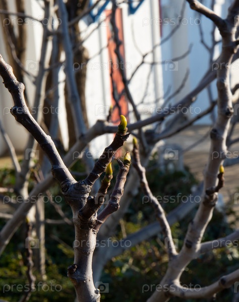 Старое дерево с распускающимися почками весной в старом парке города Алушты в Крыму