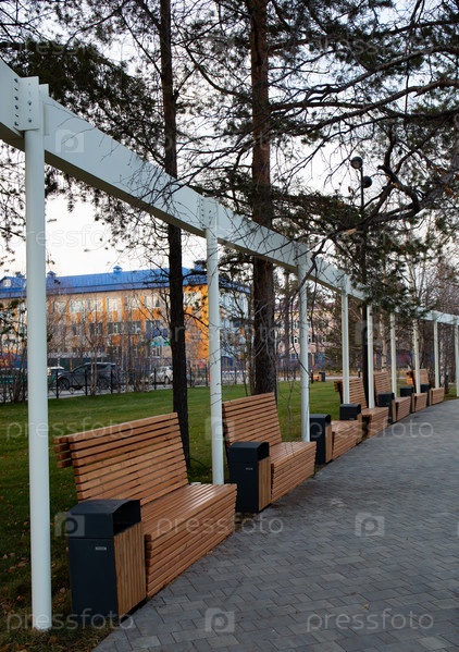 Красивая скамейка в центре города Ноябрьска на Ямале летом