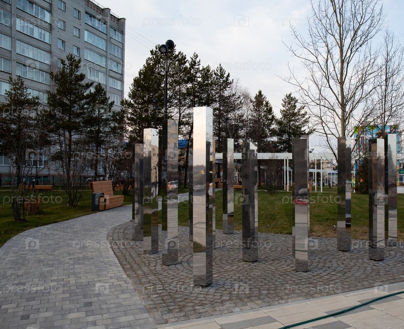 Красивая композиция в центре города Ноябрьска на Ямале летом