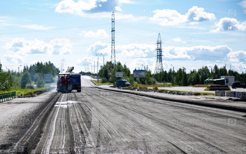 Ремонт дороги в центре города Ноябрьска на Ямале летом