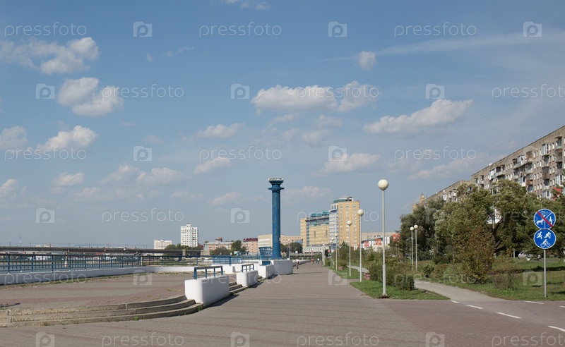 Россия Сибирь Омск Вид на город с набережной реки Иртыш летом