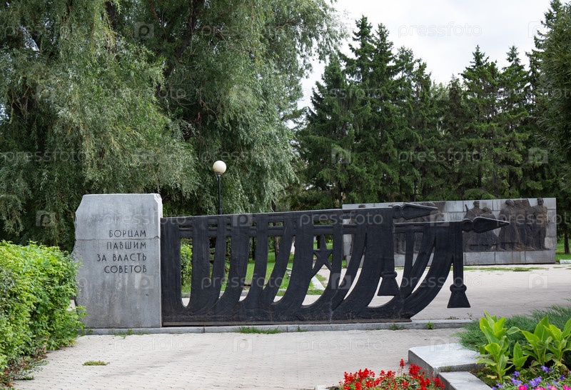 Памятник павшим революционерам в центральном парке города Омска летом 2023 года