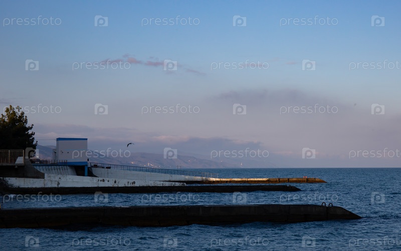 Вид на побережье Крыма с набережной города Алушты