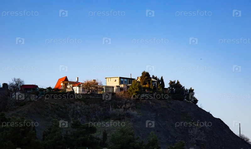 Прекрасный вид на здание на горе весной в городе Алушта в Крыму