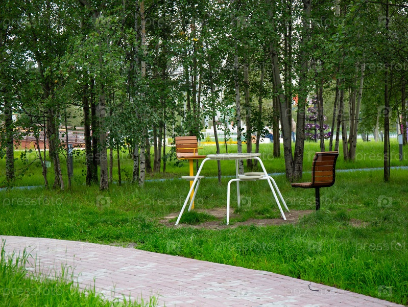 Каменная пешеходная дорожка на площади Геологов в Ноябрьске летом