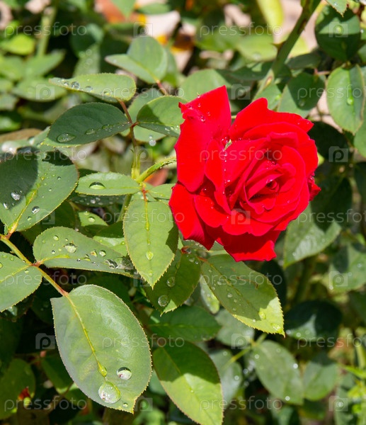 Красивая китайская роза после дождя в старом парке летом