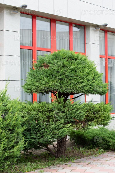 Красивое зеленое дерево в старом парке Анапы летом