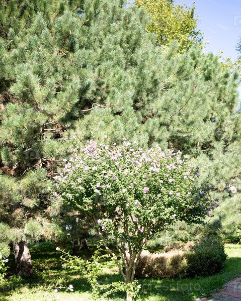 Красивое зеленое дерево в старом парке Анапы летом