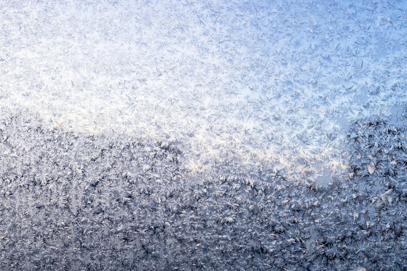 Морозный узор на оконном стекле и городских зданиях