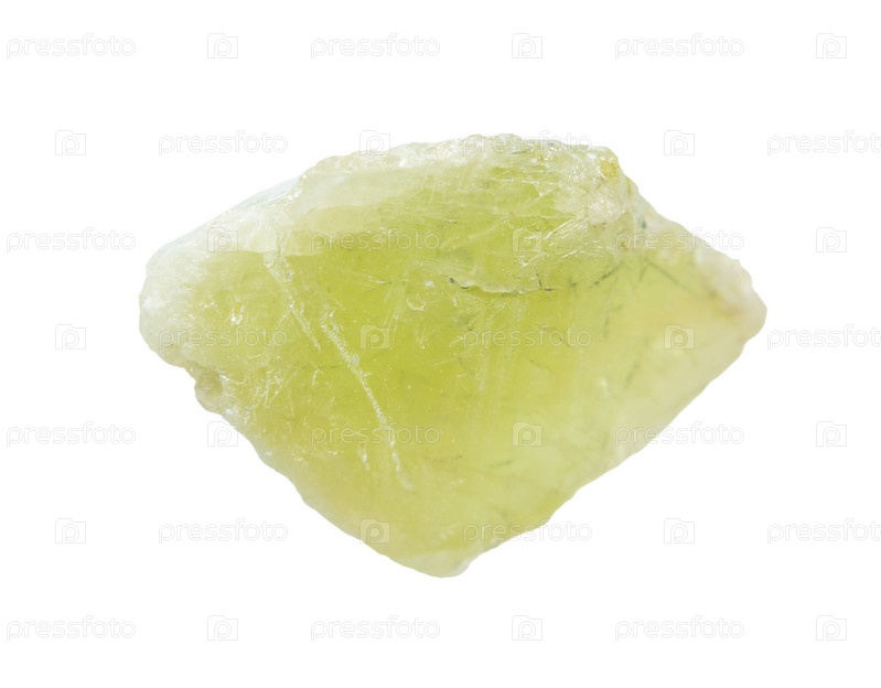 Необработанный зеленый кристалл сфена, изолированный на белом
