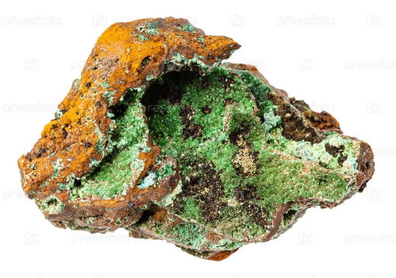 Неполированный минерал конихальцит, изолированный на белом